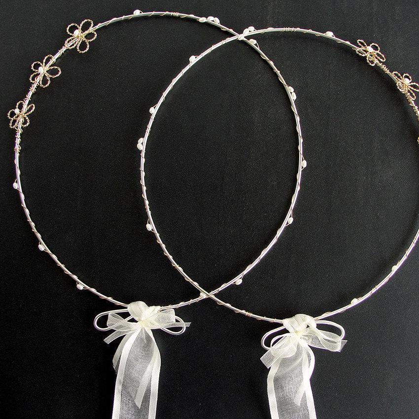 🤵👰 Entirely handmade and Greek wedding crowns made of 925 silver and decorated with white pearls.
