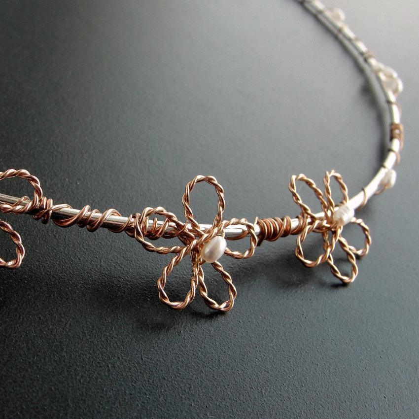 ✏ A romantic and charming design with pink gold-plated flowers and white pearls. It is our most fitting proposal for every summer wedding.