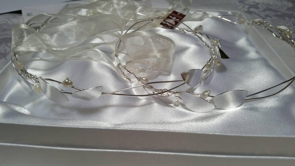 ✔ Las coronas reciben un tratamiento especial para conservar su brillo y no ennegrecer con el paso del tiempo. Se atan a elección con cinta de satén u organza en tonos blancos o marfil y se colocan en una caja blanca lujosa y elegante.