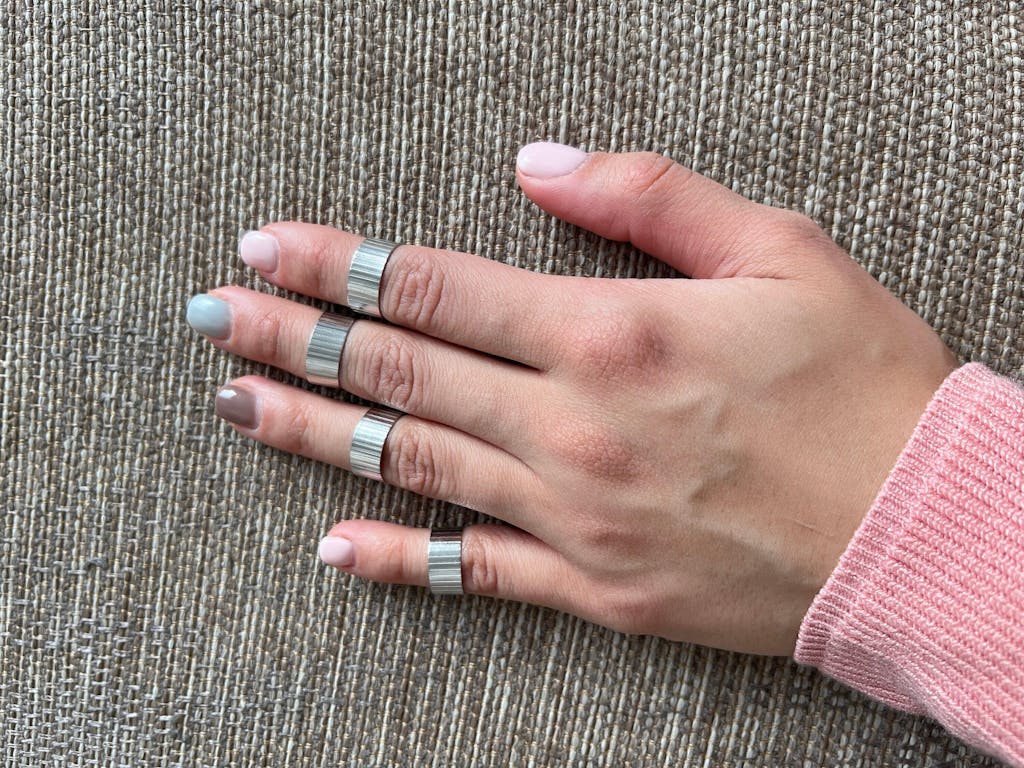 Sett med 4 håndlagde midi-ringer med riller, laget av 925 sølv. Et moteriktig ringsett du vil elske å bruke. Ideelt valg for et elegant eller casual utseende. Den perfekte gaven til enhver kvinne som liker unike og moderne smykker.
